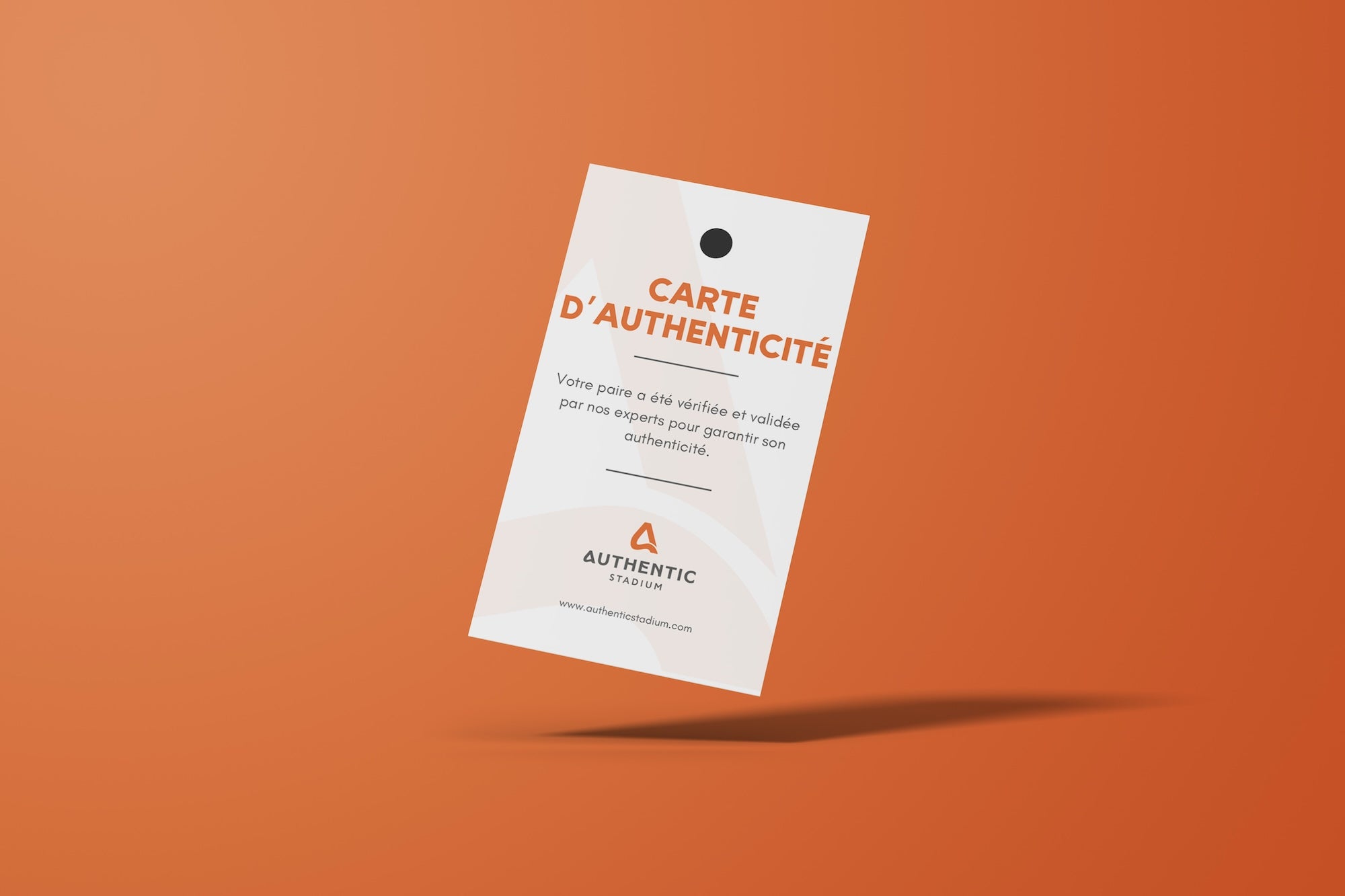 Chez Authentic Stadium, chaque détail compte. Nous accompagnons désormais chacun de vos achats de notre carte d’authenticité. Qu’est-ce que cette carte apporte ? Une preuve de transparence : vous savez exactement ce que vous portez. Une marque de confiance : L’assurance de baskets 100 % originales. Nos experts vérifient chaque paire avec soin pour vous garantir une authenticité absolue.